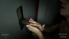 Ela chupa o pau de alguns estranhos e gosta: uma morena gostosa e sexy começa a chupar o pau que se projeta do buraco e vai direto para a boca.