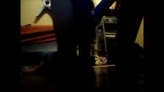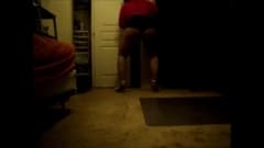 Esta transexual gorda tenta fazer uma dança erótica na frente da câmera. Não é mau, especialmente a parte em que o vibrador fica na bunda.