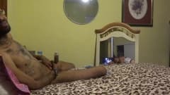 Não perca este vídeo de um cara muito magro e tatuado fodendo uma transexual gorda na bunda. Não perca em Boafoda!