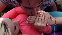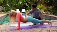 Bailey Brooks gosta de praticar ioga ao ar livre com um personal trainer. O rapaz fica excitado com o corpo dela e se masturba enquanto chupa seus pés.