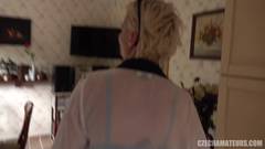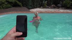 Essa modelo checa loira se diverte muito sendo fodida por esse cara que adora ir à dura na sua buceta a beira da piscina