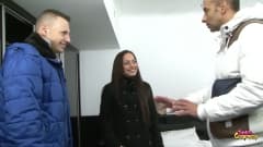 Meu amigo Black, com seu pau grande, e eu estamos nos divertindo com uma morena da vizinhança, estamos dando uma surra nela e ela está adorando!