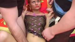 Esta mulher de cabelos vermelhos no calor joga com dois homens que estão altamente motivados para passar um bom tempo com ela.