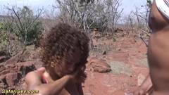 A espetacular garota negra é tão mal-humorada quanto uma pantera, mas será domada em um safári e fodida no chão pelos caçadores.
