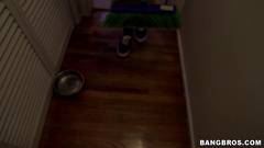 A morena Jasmine Caro é uma faxineira extraordinária. Ela chupa o pau de seu chefe e é fodida!