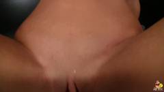 Jovem sexy com peitos pequenos e buceta raspada e apertada recebe uma boa surra de pênis duro e depois goza no rosto