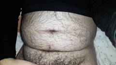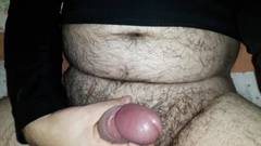 Um cara gordo muito peludo masturba seu grande pau para nós na frente da câmera. Você não pode perder.