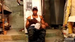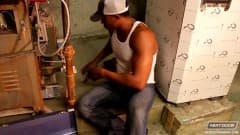 Este pobre negro permaneceu trancado no porão. Felizmente, ele tem seu impressionante pau para se masturbar e passar o tempo de forma mais agradável!