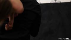 Impaciente, Rebel começa a se acariciar, então seu namorado chega e decide se juntar à festa, para o deleite da bela morena.