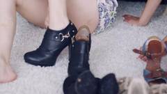 Essas mulheres são viciadas em comprar sapatos. Hoje eles receberam uma caixa com modelos que os deixam animados. Eles são muito bons lésbicas em ação