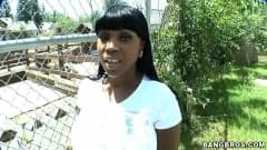 Uma jovem negra com seios muito grandes e uma bunda gorda quer ser fodida por esse garoto branco que a faz gemer de prazer enquanto ele enfia o pau
