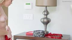 Uma linda loira com seios pequenos se delicia na banheira e depois vai se deliciar com um cara para comemorar o Dia dos Namorados.