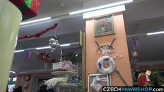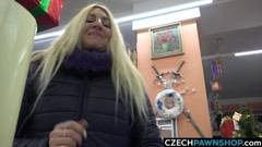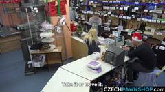 A loira tem problemas financeiros e é capaz de qualquer coisa para conseguir o dinheiro. No começo, ela fica envergonhada, mas depois gosta da transa.