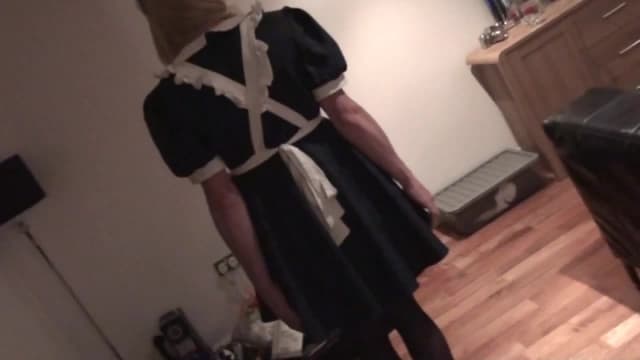 Esta travesti loira está fazendo os trabalhos domésticos, quando de repente é mandada pagar boquetes e fazer beijos gregos. Ela termina em um anal gostoso!