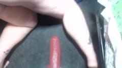 Mais uma vez, esta trans operada posiciona o brinquedo sexual e se diverte. Ela adora meter o caralho de borracha na buceta. Veja como ela sobe e desce!