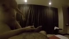 Esta é a segunda vez que esse cara filma essa transexual asiática peituda. Desta vez, é ele quem vai comer a bunda dela.