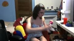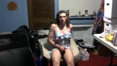Esta trans novinha com carinha de nerd está se divertindo com seu pau. Ela se masturba vigorosamente e põe um plug no cuzinho para ter ainda mais prazer.