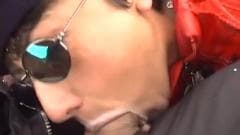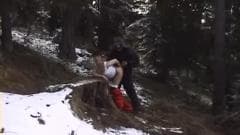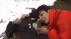 Esse cara coloca sua namorada de MILF para chupar seu pau quando eles sobem a montanha para esquiar. Antes de colocar os esquis