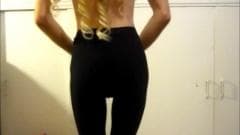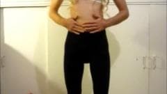 Jovem garota com um grande galo se esfrega na webcam