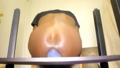 Um cara negro homossexual enfiando um dildo enorme em seu traseiro.