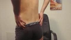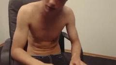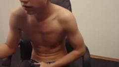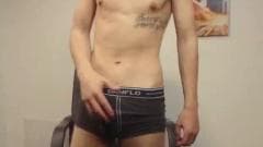 Esse jovem sexy está se divertindo na frente da câmera enquanto se acaricia e sente prazer total.