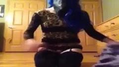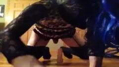 Hoje descobrimos um travesti escondendo o seu rosto. Show quente com um dildo enfiado no rabo enquanto ele se masturba