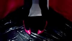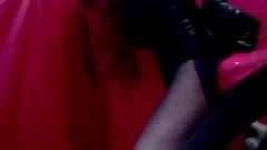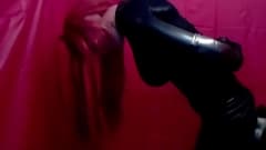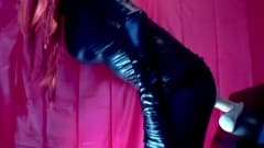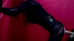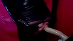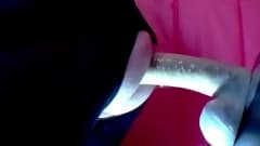 Trans arquea-se para frente para meter um grande vibrador até o fundo!