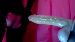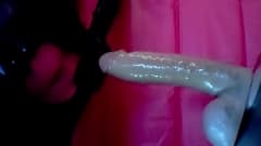 Ela está com o ânus totalmente dilatado depois de colocar esse grande consolo na bunda. Ela faz movimentos super profundos e parece adorar!