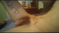 Esse cara quer se masturbar mostrando seu pau peludo enquanto sente o prazer entre as pernas sozinho e de frente para a câmera.