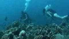 Esse casal nunca tentou fazer sexo nas profundezas do mar. Hoje eles farão isso e tudo será gravado para que você possa ver como seu pênis entra!