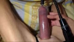Bombeando seu pênis enquanto quer se masturbar na frente da câmera, o bombeamento do pênis o deixa excitado