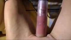 Ele puxa seu pênis para deixá-lo duro e se masturba com uma ventosa
