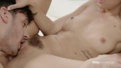 Surpreenda o namorado dela se masturbando, taxe-o com o celular e comece a se tocar olhando para ele até que ele perceba.