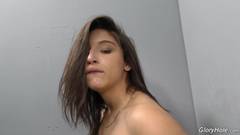 Esta jovem em exposição em uma loja de pornografia está em uma sala com um pau preto na parede. Veja como você gosta!