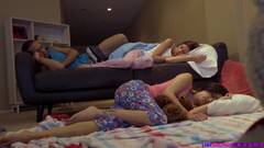 As três lindas irmãs foram convidadas por esse cara para dormir em sua casa, e agora sabemos por que ele estava tão interessado. Elas não sabem que ele vai transar com elas.