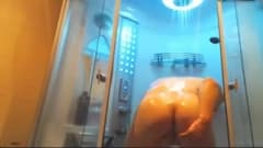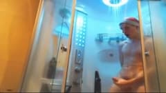 Esse garoto alemão chegou das férias de Natal e decide tomar um banho no chuveiro, mas sem tirar o chapéu. Seu pau fica muito duro