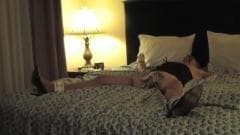 Este travesti está amarrada na cama e está sendo atormentado pelo seu homem! Ela usa sapatos sexys e adora estar vulnerável para aproveitar ao máximo!