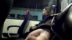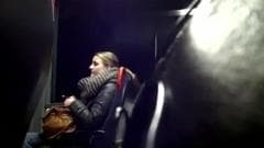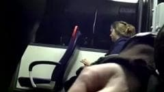 Essa garota parece que não vê esse cara se masturbando no ônibus, mas ele com certeza gosta e é curioso. É um bom momento!