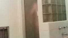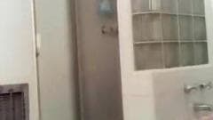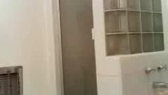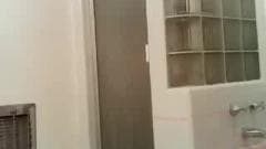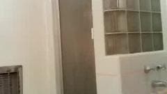 Há uma câmera neste banheiro, onde você pode ver o momento em que essa mulher se banha. Vamos vê-la sair nua e gostaremos dela.