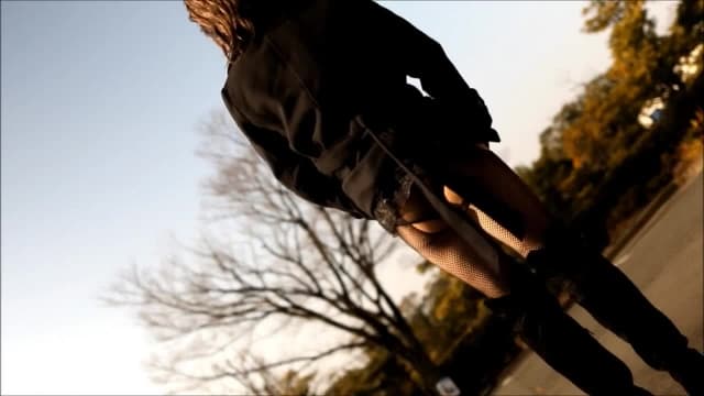 Esta travesti decidiu andar por aí com o rosto mascarado. Ela está super elegante de sobretudo e botas, e por baixo está muito sexy, semi nua!