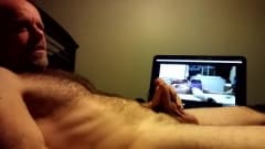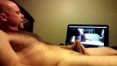 Este homem maduro e peludo é meu papai. Ele se masturba toda noite quando assiste a filmes pornográficos e, aparentemente, seu pau fica muito quente.