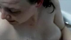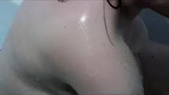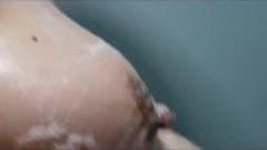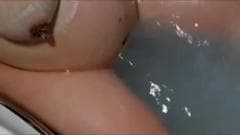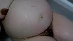 Esta mulher gravida é gravada enquanto toma banho na banheira e acaricia os seios, preparando-se para amamentar. Que Linda Mulher!