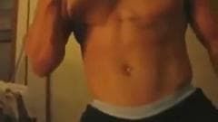 Esse cara musculoso só quer se exibir, então ele flexiona seus músculos e se toca até fazer seu amigo ter uma boa ereção.
