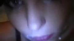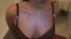 É uma felação maluca que você pode admirar com esse casal amador e essa morena de seios grandes que devora o pênis de seu macho completamente.