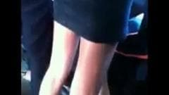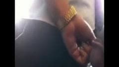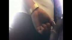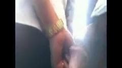 O cara enfia o pênis enquanto o ônibus está em movimento, para que essa garota acaricie. Ela resiste e apenas cor de rosa.