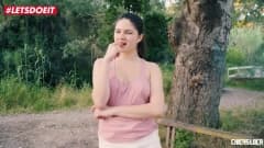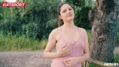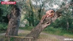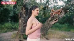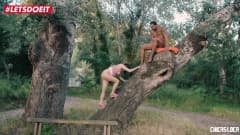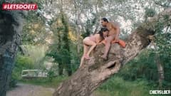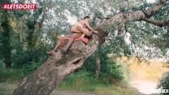 Ela é muito bonita e cheia de tesão e, embora nos mostre seus peitos na floresta, ela recebe um homem negro que mora em uma árvore