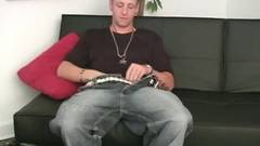 Este é um garoto loiro que passa a tarde se masturbando no sofá e nos deixa querendo chupar seu pau tão gostoso que parece. Que bom!