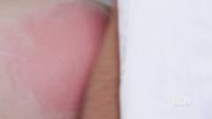 Stella é amarrada em uma cadeira de médico enquanto recebe uma salsicha enfiada em sua boca babada.