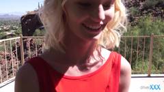 Ele pega essa loira adorável, que mal pode esperar para foder. O cara a leva para um lugar privado, ensolarado, para que ela possa desfrutar da sua piroca.