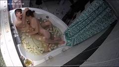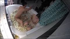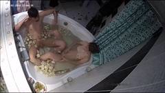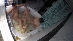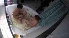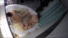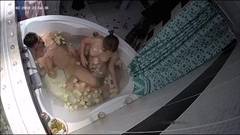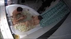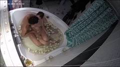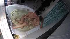 A amadora Evi entra no banheiro e Alan a segue. A visão da câmera de cima mostra-os em uma banheira com pétalas de rosa. Eles fornecem e fodem.